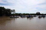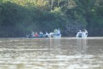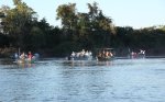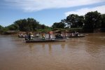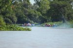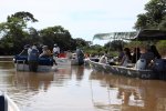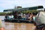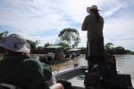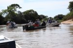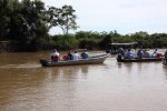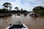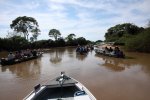 The reverse side of the scene, as in Kenya with Leopard, when a Jaguar is flushed, the guides warn each other by radio and all the boats are launched at full speed. On site, some are respectful and stay on the opposite bank, which was the case with our guide, but often the boats pass by each other. All this, in a polluted gas outboards atmosphere. ' title='L'envers du décors, comme au Kenya avec le Léopard, dès qu'un Jaguar est débusqué, les guides se préviennent mutuellement par radio et toutes les embarcations sont lancées à fond la caisse. Sur place, certains sont respectueux et restent sur la berge en face, ce qui était le cas de notre guide, mais souvent les embarcations se passent devant les unes les autres. Tout cela dans une atmosphère polluée par les gaz des hors-bords.