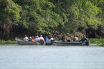 L'envers du décors, comme au Kenya avec le Léopard, dès qu'un Jaguar est débusqué, les guides se préviennent mutuellement par radio et toutes les embarcations sont lancées à fond la caisse. Sur place, certains sont respectueux et restent sur la berge en face, ce qui était le cas de notre guide, mais souvent les embarcations se passent devant les unes les autres. Tout cela dans une atmosphère polluée par les gaz des hors-bords.