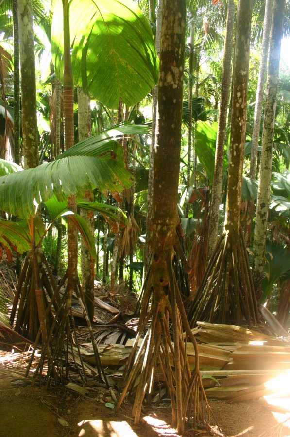 Le latanier latte se reconnait facilement au cône basal formé par ses racines échasses, lesquelles lui permettent